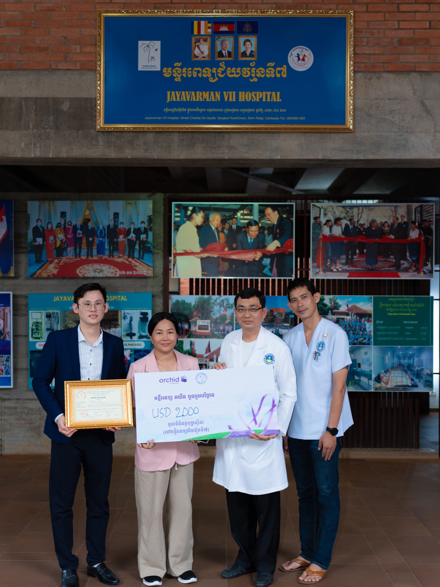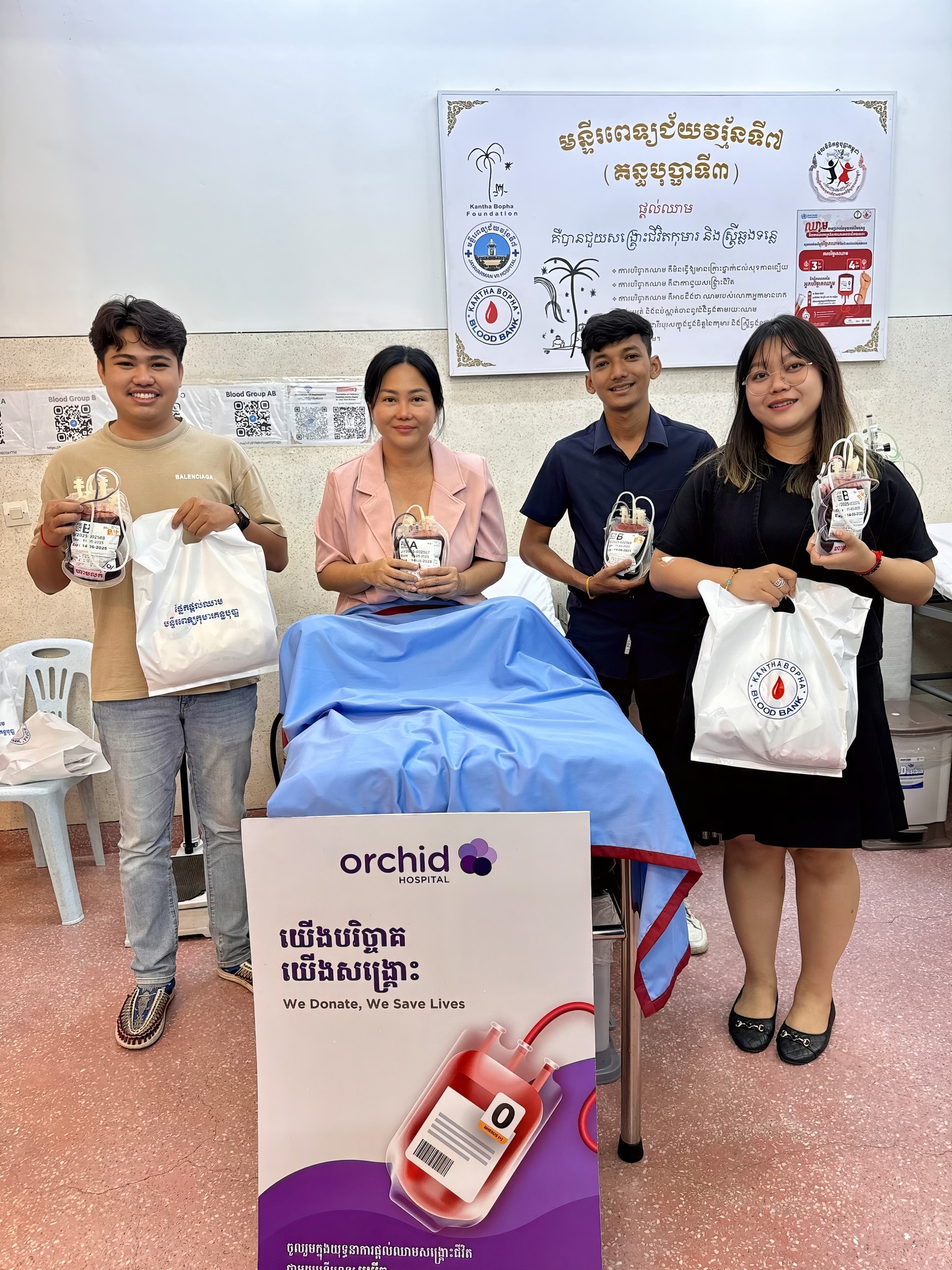 May 11, 2025 – In a continued commitment to social responsibility and community health, the management and team of Orchid Hospital proudly donated USD 4,350 to the Kantha Bopha Swiss Foundation at Jayavarman VII Hospital (commonly known as Kantha Bopha Children’s Hospital in Siem Reap). This contribution reinforces our support for the Foundation’s vital mission of saving the lives of infants and children across Cambodia.In parallel, Orchid Hospital also participated in the blood donation initiative under the campaign “We Donate, We Save Lives,” further demonstrating our dedication to promoting health and wellness in our community.We extend our sincere appreciation to all members of the Orchid family who generously contributed to this meaningful cause. Your compassion makes a real difference.Orchid Hospital wishes everyone continued happiness, health, and prosperity.