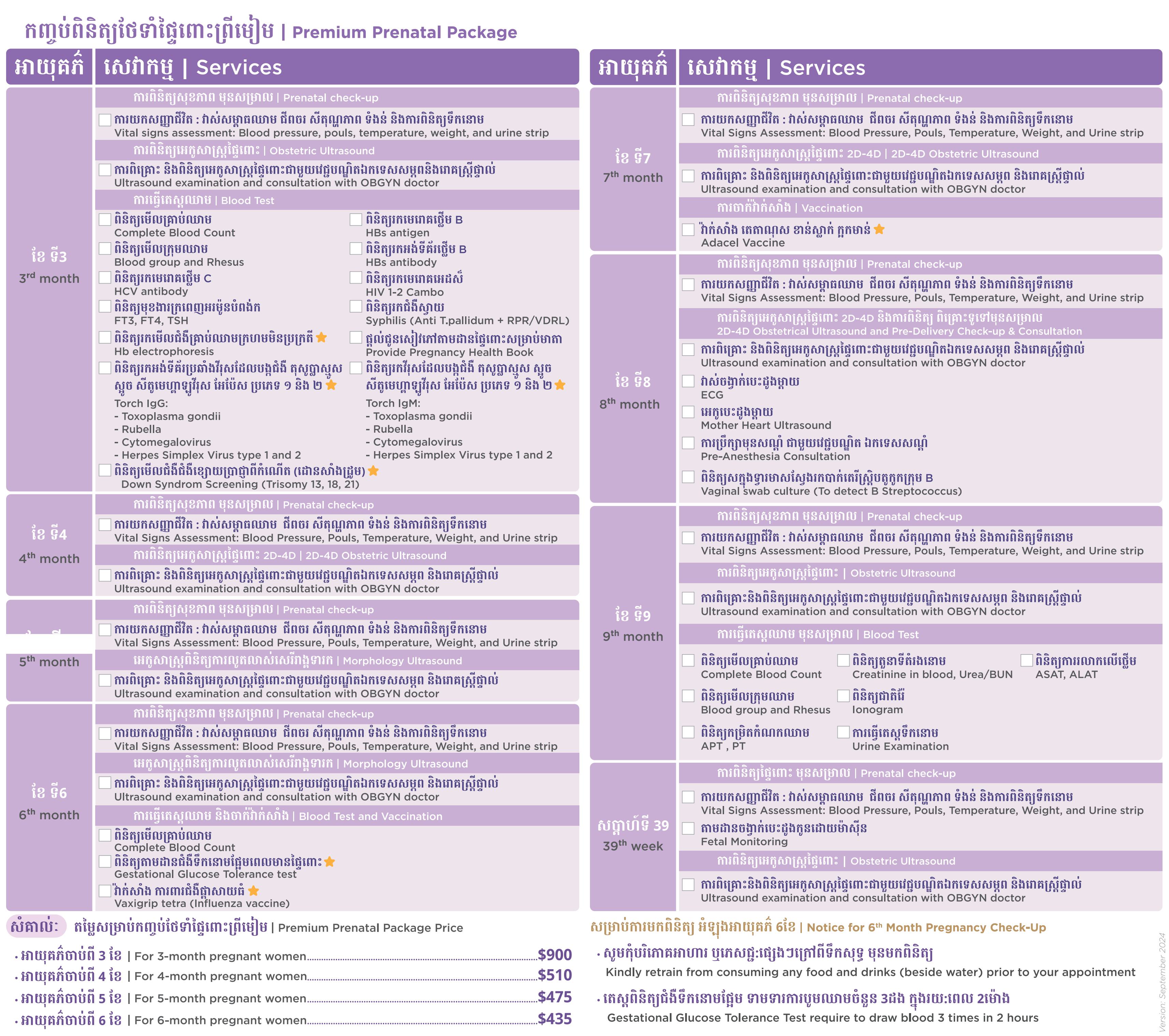 កញ្ចប់ពិនិត្យថែទាំផ្ទៃពោះប្រេីមៀម