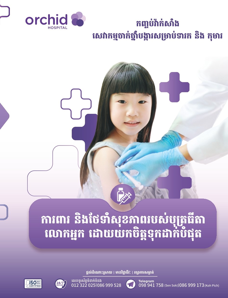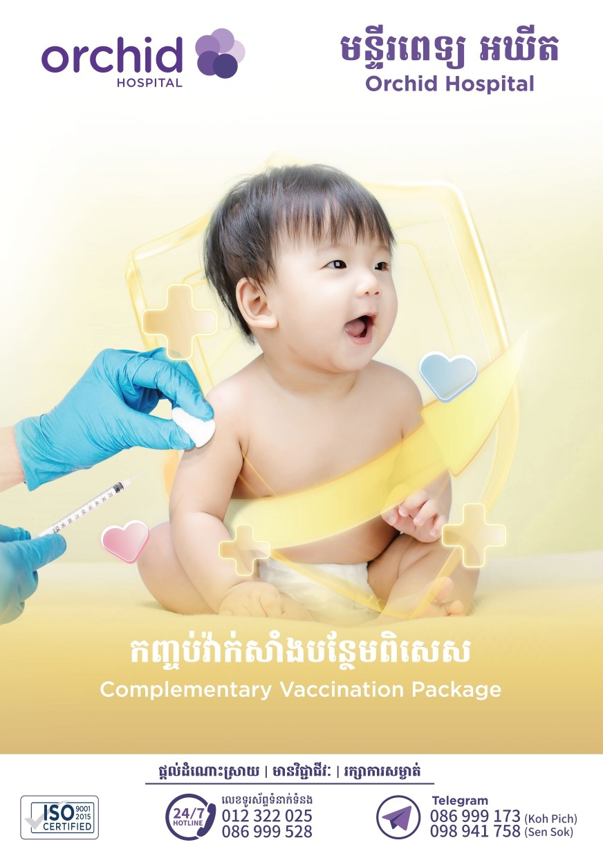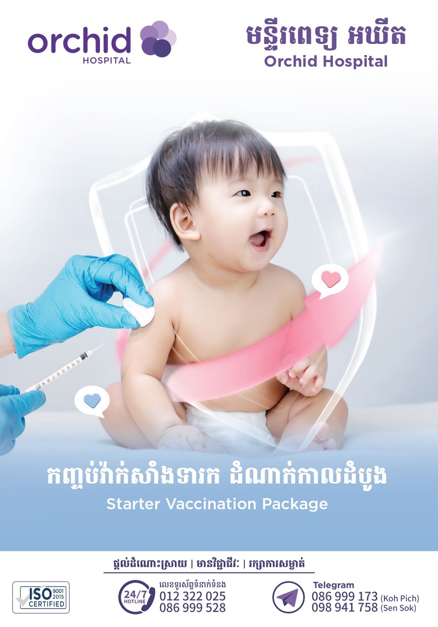 Vaccination Package កញ្ចប់វ៉ាក់សាំង Vaccination Package កញ្ចប់វ៉ាក់សាំងបន្ថែមពិសេស Complementary Vaccination Package កញ្ចប់វ៉ាក់សាំងទារកដំណាក់កាលដំបូង Starter Vaccination Package Newborn Screening Test ការជួសឈាមធ្វើតេស្តកែងជើងពិនិត្យជំងឺ 7 មុខក្រោយសម្រាល Newborn Screening Test (7 tests)