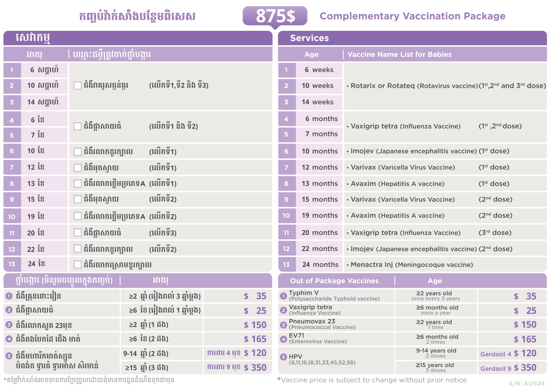 កញ្ចប់វ៉ាក់សាំងបន្ថែមពិសេស